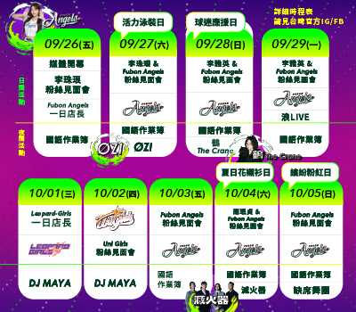 活動期間,台灣啤酒更攜手重量級音樂卡司與中職啦啦隊共同參與。富邦悍將啦啦隊Fubon Angels、台啤永豐雲豹浪LIVE電豹女及統一獅Uni Girls啦啦隊每日輪番登場,與粉絲近距離互動。民眾可於活動現場購買「啦啦隊女神大禮包」參與見面會,除了有超豐富的限定週邊商品外,還可以獲得專屬合影機會。此外,ØZI、滅火器、國語作業簿、The Crane 鶴、DJ Maya、DJ賴皮,也將接力演出,點燃全場熱情。
